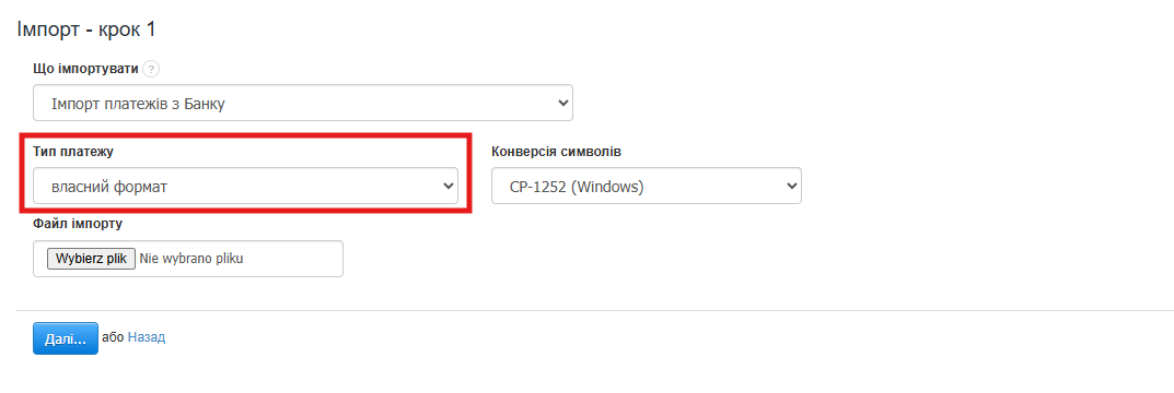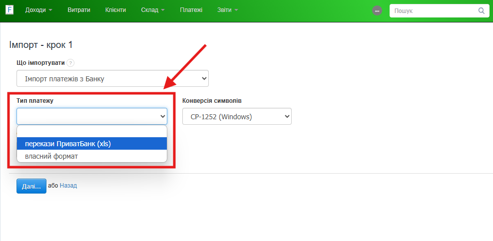 Імпорт платежів у власному форматі