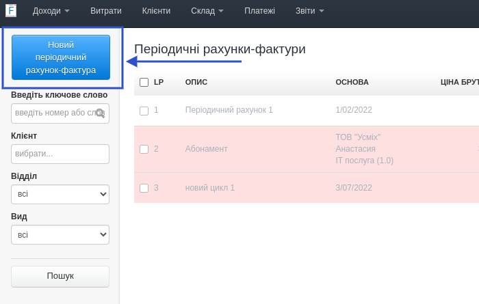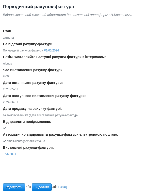 Можливість автоматичного періодичного виставлення документів доступна починаючи від плану Standard. Ця функція дозволяє автоматизувати процес виставлення періодичних рахунків вибраному клієнту через певні проміжки часу. З цієї публікації ви дізнаєтеся, як створити цикл рахунків-фактур на основі іншого документа.