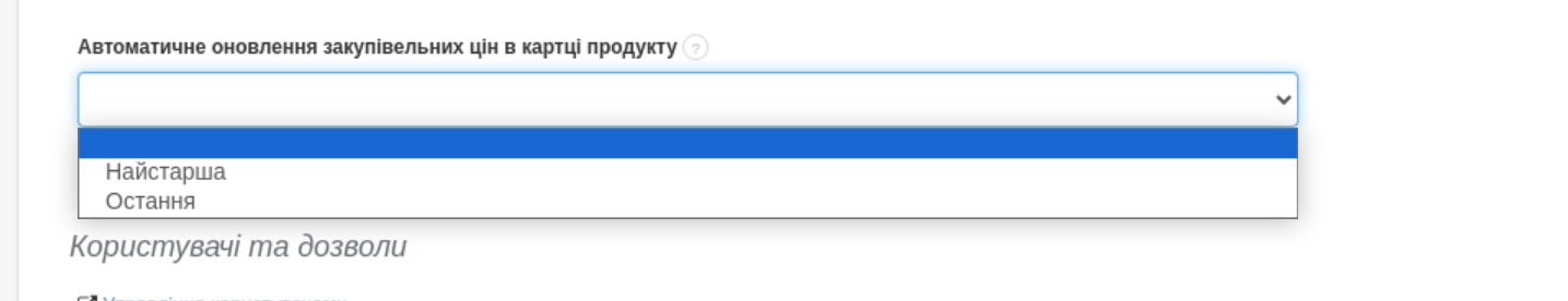 Використовуючи складський модуль, ви можете вирішувати, як будуть оновлюватися ціни на ваші продукти. Ви можете оновити закупівельні ціни в картці продукту вручну або ввімкнути опцію автоматичного оновлення цін відносно документів прийняття ПМ. Щоб увімкнути опцію автоматичного оновлення цін, перейдіть до меню Налаштування > Налаштування акаунта > Конфігурація > Склади > Автоматичне оновлення цін закупівлі в картці продукту. Зверніть увагу, що налаштування пропонує 3 варіанти: - пусте поле  - Найстарша - Остання Якщо ви виберете оновлення цін за “останньою”, то розміщаючи продукт на складі з новою закупівельною ціною, вона негайно змінюється в картці товару. Якщо ви вибираєте варіант “найстарша”, тоді система вибере та покаже найстарішу ціну продукту (відповідно до черги FIFO), яка буде доступна у вхідних документах складу (ПМ). Якщо залишити поле порожнім, це означає, що оновити закупівельні ціни в картці продукту можна буде лише шляхом редагування картки продукту вручну. Зверніть увагу, що ця опція стосується як документів ПМ, оформлених вручну, так і документів ПМ, які виставляються автоматично для рахунків-фактур (з увімкненою опцією автоматичного створення складських документів для рахунків-фактур).
