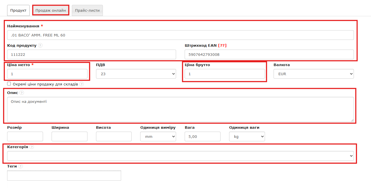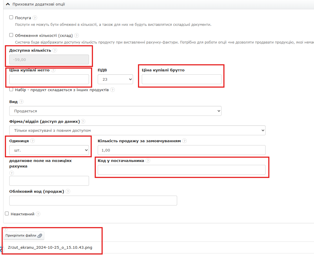 У нашій системі можна налаштувати відображення стовпців у списку продуктів. Для цього перейдіть до закладки Продукти або Склад > Продукти, далі у правому верхньому куті натисніть кнопку шестерні зі стрілкою і виберіть опцію Налаштувати відображення стовпців.   Програма покаже вікно, в якому ліворуч можна вказати кількість продуктів, що відображаються у списку. За замовчуванням система показує 25 продуктів, але, натиснувши у полі За замовчуванням під пунктом Кількість продуктів на сторінці, можна вибрати 10, 25, 50 або 100. Унесені зміни підтверджуються кнопкою Зберегти У цьому ж вікні праворуч можна вказати, яку інформацію мають містити стовпці в списку продуктів — потрібно відмітити чекбокси біля обраних полів. Унесені зміни підтверджуються кнопкою Зберегти Натискаючи кнопку Відновити налаштування за замовчуванням, скасовуються всі раніше обрані чекбокси. Розташування стовпців зберігається під час роботи в програмі в межах одного сеансу входу. Після виходу з системи та повторного входу налаштування стовпців автоматично повертаються до "за замовчуванням". Після вибору відповідних чекбоксів і збереження, у списку продуктів з’являться стовпці з відповідними даними. Дані, які відображатимуться у зазначених стовпцях у списку, попередньо мають бути заповнені на картці продукту. Для цього переходимо до закладки Продукти або Склад > Продукти, обираємо продукт зі списку та натискаємо кнопку Редагувати, або додаємо новий за допомогою кнопки Новий продукт. Зображення - зображення товару додається за допомогою кнопки Прикріпити файли (розташована внизу картки продукту в режимі редагування). Найменування - назва продукту Ціна нетто - чиста ціна (без ПДВ) продукту, що продається  Ціна брутто - ціна з ПДВ продукту, що продається  Продаж онлайн - активна опція онлайн-продажу товарів і послуг, яка дозволяє вбудувати віджет оплати на ваш вебсайт Продано - функція активна лише в акаунті, де не увімкнено управління складом, вказує кількість проданого товару В наявності - кількість продукту, доступного на складі, або у разі відсутності активного управління складом — кількість, введена вручну в полі Доступна кількість / Прийнято Ціна купівлі нетто - чиста ціна (без ПДВ) товару, придбаного, наприклад, для подальшого перепродажу Ціна купівлі брутто - ціна з ПДВ товару, придбаного, наприклад, для подальшого перепродажу Код продукту - код виробника або номер, зазначений на картці продукту продавцем (SKU) Код у постачальника - внутрішній код у постачальника, у якого ви закуповуєте відповідний товар Одиниця - одиниця товару, наприклад: штука (шт.), комплект (кпл.), година (год.), місяць (міс.), дні, м², км, кг тощо. Створення - дата створення продукту в системі, відображена в розділі Дії, пов’язані з продуктом під його карткою Дата останнього запису - дата останнього запису на картці продукту, наприклад, редагування його даних, відображається в розділі Дії, пов’язані з продуктом під його карткою Категорія - категорії можна призначати клієнтам, продуктам , а також документам, пов’язаним із доходами та витратами, у цій статті дізнаєтеся, що таке категорія та як нею користуватись. Штрихкод EAN - штрихкоди широко використовуються в процесах продажу, зберігання та логістики. Програма BitFaktura дозволяє швидко знаходити товари за кодом EAN, друкувати ет