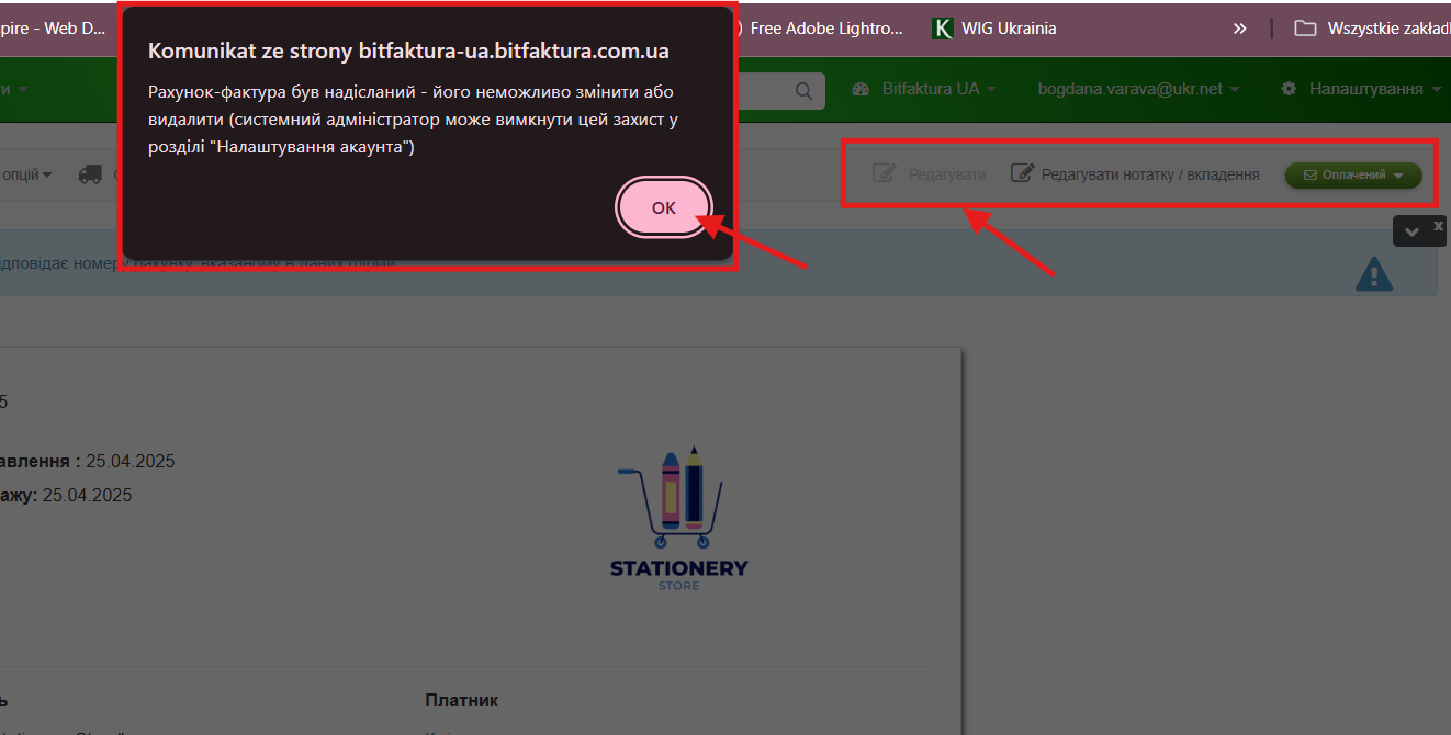 Як заблокувати редагування та видалення рахунка-фактури після його відправлення?