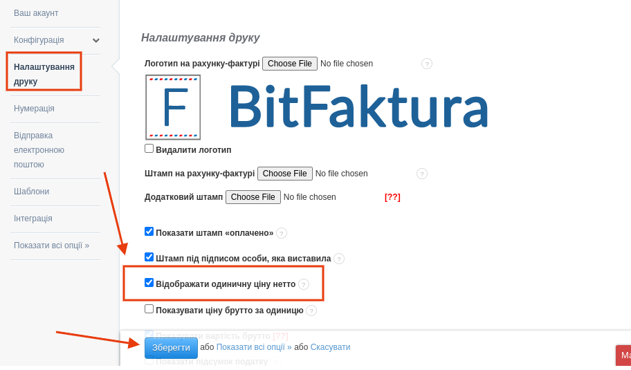 Щоб додати одиничну ціну нетто до роздруківки рахунка-фактури на постійній основі: .- перейдіть до закладки Налаштування > Налаштування акаунта > Налаштування друку,
