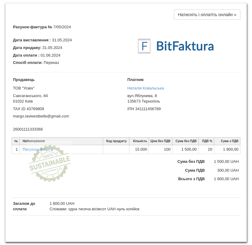 - біля опції Додатковий штамп на рахунку-фактурі натисніть кнопку Choose file і завантажте файл з диска пристрою - ви можете завантажити тільки графічний файл з розширенням jpg, bmp або png,