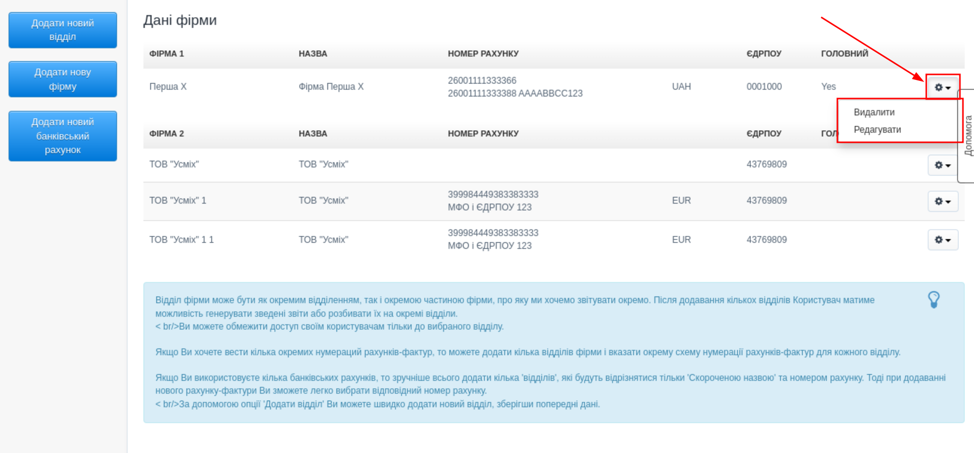 Декілька рахунків фірмових