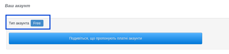 Якщо ви не знаєте, яким планом користуєтеся зараз, перейдіть на закладку Налаштування > Налаштування акаунта > Ваш акаунт. У розділі Тип акаунта ви знайдете позначення поточного плану.