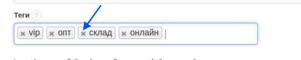 Кожен тег зберігається в системі відразу, що означає, що під час додавання тегів на картці іншого клієнта ви можете вибрати раніше збережені варіанти.