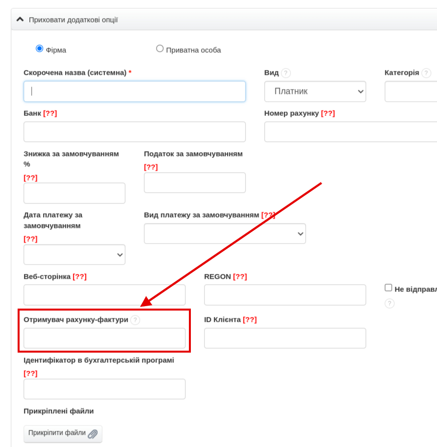 - у полі Отримувач рахунку-фактури введіть ім'я та прізвище особи, уповноваженої на отримання рахунку-фактури