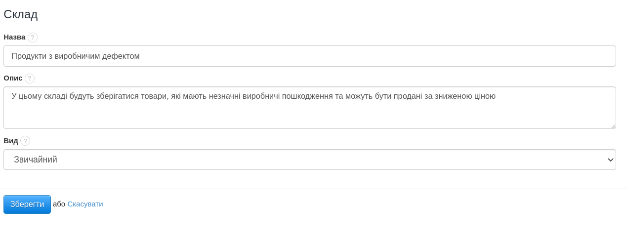 - підтвердіть створення складу, натискаючи кнопку "Зберегти".