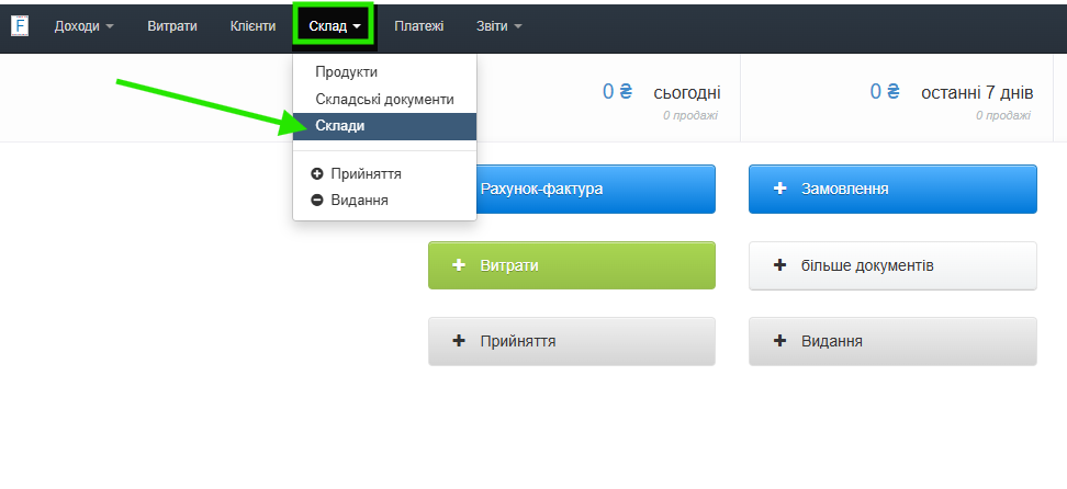 Якщо в налаштуваннях акаунта ви активували функцію управління складом, ви можете створювати нові склади. Щоб додати склад: .- перейдіть до закладки Склад > Склади;