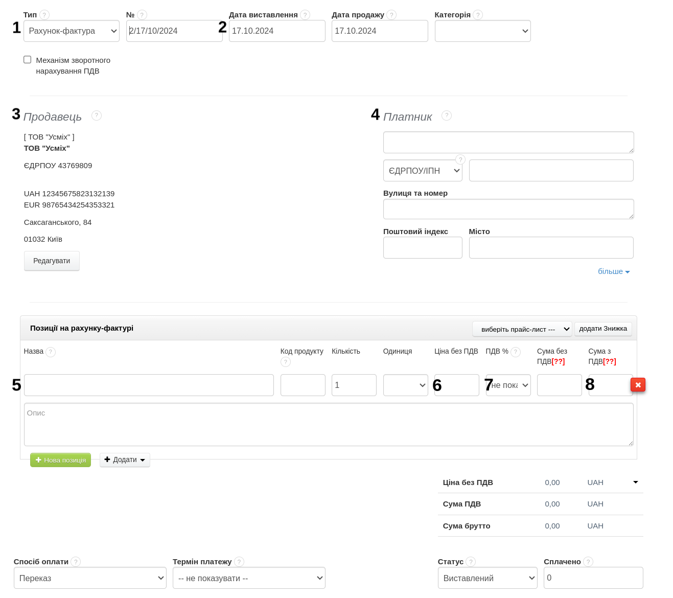 Після збереження можна вже виставляти документи цього типу. Достатньо обрати Доходи > Валютний рахунок-фактура, а потім Додати.