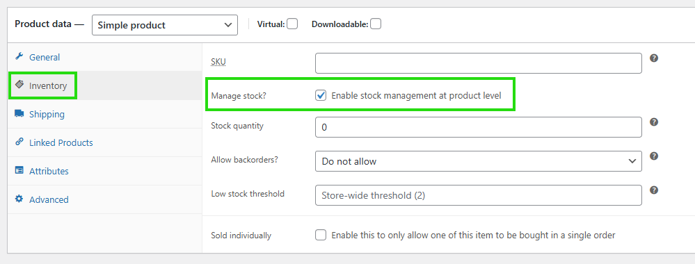 Щоб синхронізація складу працювала правильно, не забудьте встановити в WooCommerce: Продукти > Редагувати продукт > Склад > Опцію: Увімкнути управління станом складу на рівні продукту.