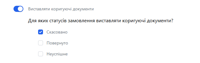 - Якщо хочете, можете також виставляти коректи для замовлень, які Скасовані, Повернуті або Неуспішні.