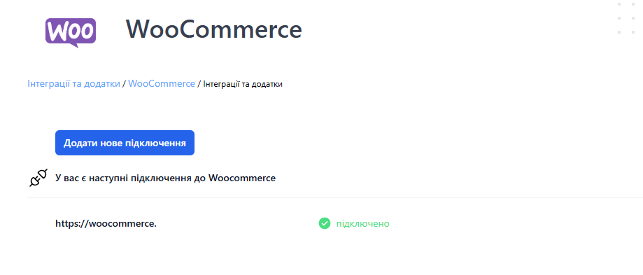 - Якщо ви маєте декілька магазинів WooCommerce і бажаєте підключити їх до одного облікового запису в BitFaktura, перейдіть до розділу Налаштування > Інтеграції та додатки > WooCommerce > Налаштування та натисніть Додати нове підключення.