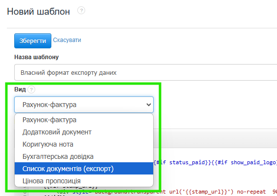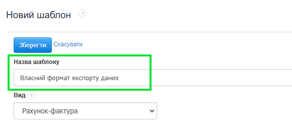 - У формі створення шаблону в полі Назва шаблону вкажіть назву, яка з'явиться для вибору у списку експортів;