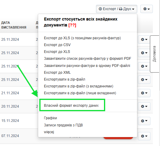 - експорт додаткових документів, таких як інші рахунки-фактури або власний не бухгалтерський документ;
