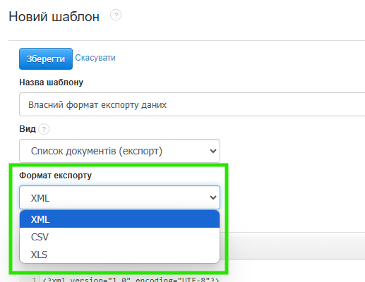 Якщо ж ви хочете експортувати дані без необхідності налаштовувати файл, завантажений із системних експортів, ви можете створити власний, персоналізований формат експорту. Експорт можна зберегти у форматі .XML, .CSV та .XLS.