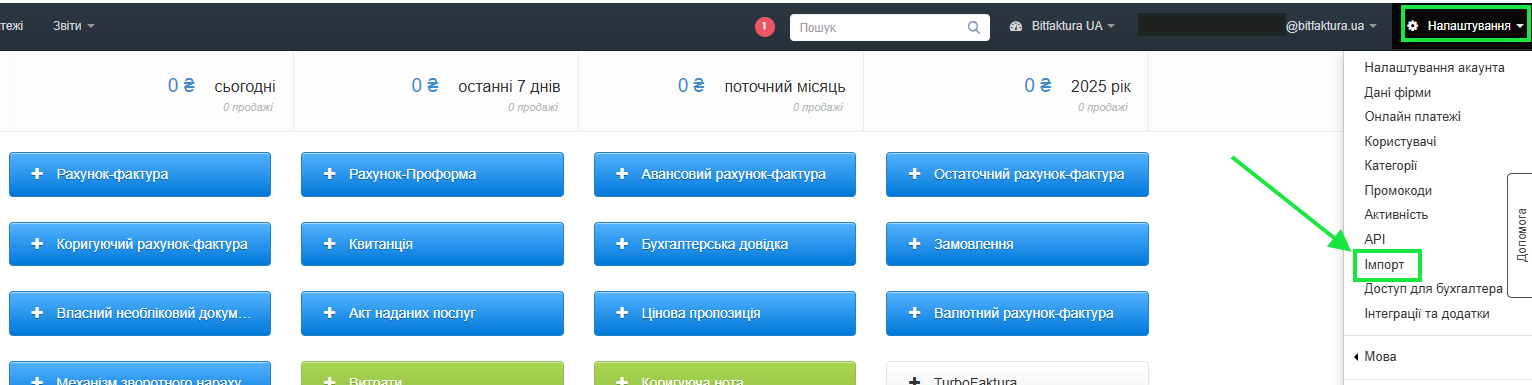 - з списку імпортів виберіть опцію Імпорт рахунків-фактур;