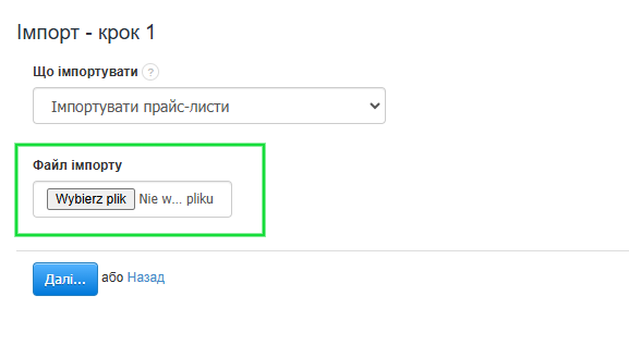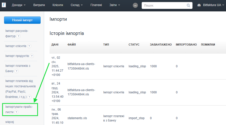 Коли ви активуєте функцію прайс-листів в акаунті, у системі з’явиться можливість імпорту.