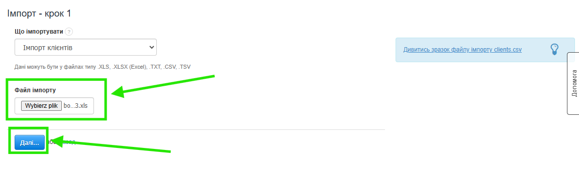 Щоб імпортувати завантажену базу клієнтів: