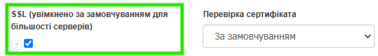 Чекбокс біля опції SSL за замовчуванням увімкнений, оскільки більшість серверів вимагають цього налаштування для коректного надсилання.