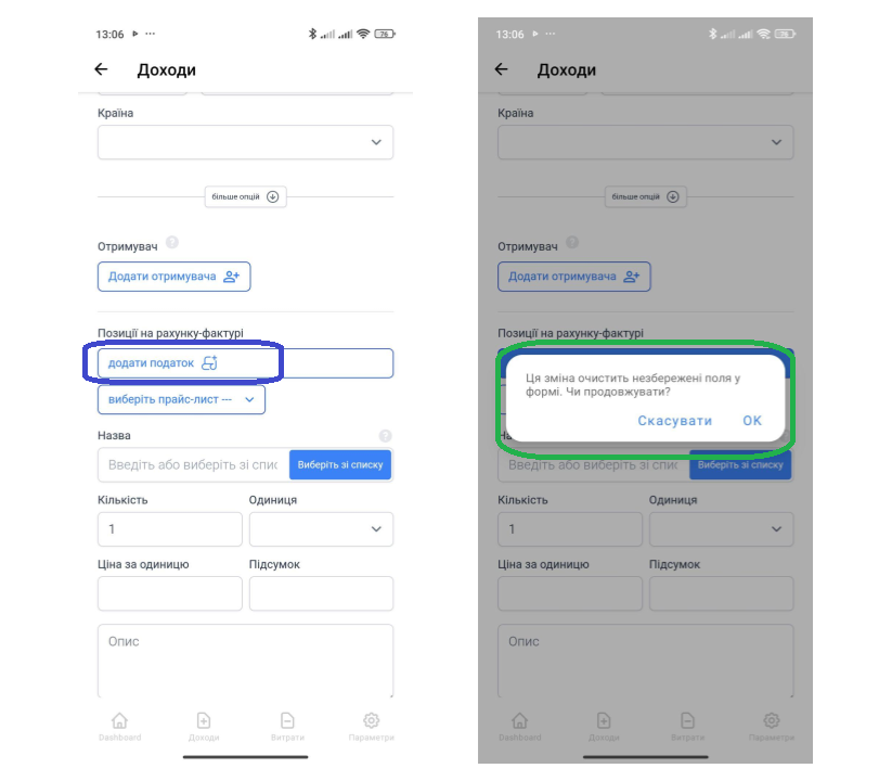 "Ця зміна призведе до очищення незбережених полів у формі. Продовжити?"