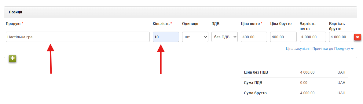 - У наступній частині форми вказуємо, який продукт хочемо перемістити на інший склад та кількість, що переміщується.