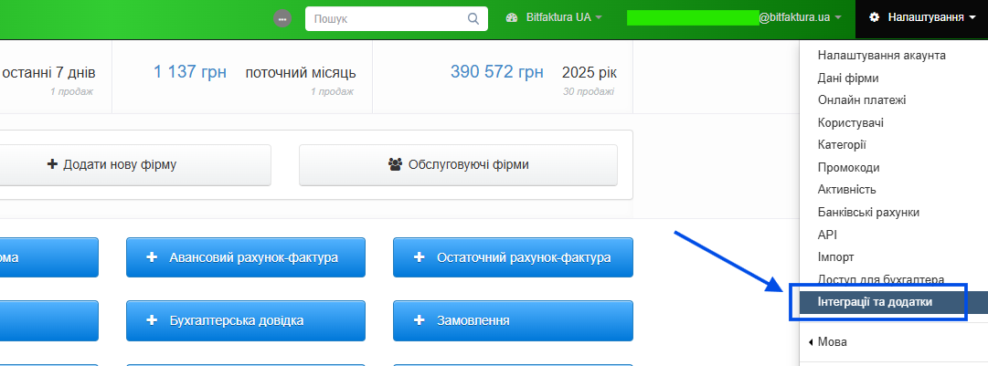 - увійдіть до BitFaktura