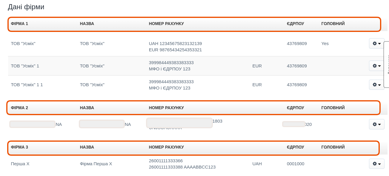 Фірми як окремі акаунти у BitFaktura