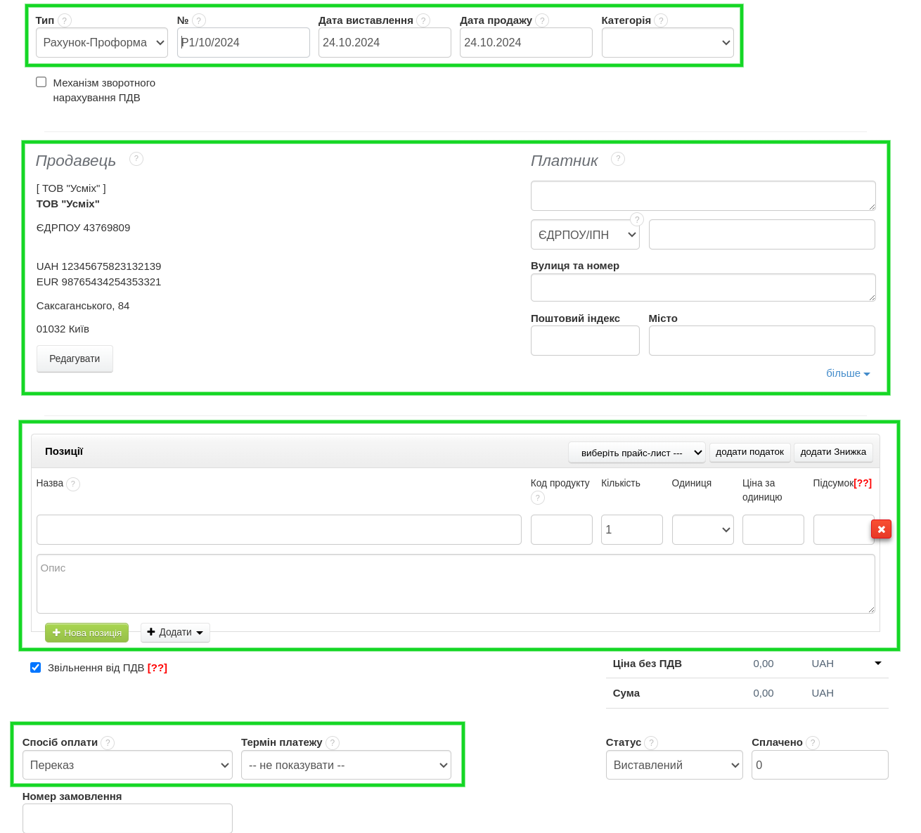 Увага! Документ Рахунок-Проформа є універсальним документом, тому з одного документа Рахунок-Проформа можна виставляти багато рахунків-фактур для окремого Клієнта.