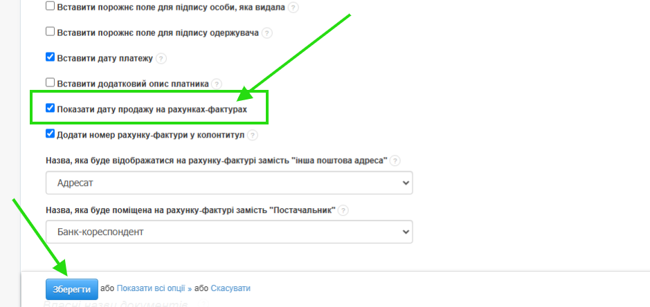 - перейдіть в меню Налаштування > Налаштування акаунта > Налаштування друку, та позначте там опцію Показати дату продажу на рахунках-фактурах